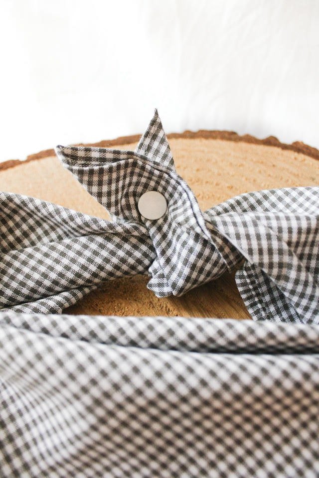 • Bandane su šivane u obliku trokuta tako da se mogu nositi i s jedne i s druge strane. Preporučamo ih vezati jednim do dva čvora, a tek onda zakopčati gumbima radi dodatne sigurnosti.Ako vam se bandana čini predugačka/prevelika, prije vezanja ju prvo možete zarolati par puta tako da gornju stranicu rolate prema donjem dijelu bandane i na taj način sami regulirate veličinu (pogledati slike zavezanih bandana).S obzirom da nam je sigurnost vaših njuški na prvom mjestu, molimo da pažljivo pročitate sljedeće upute:
